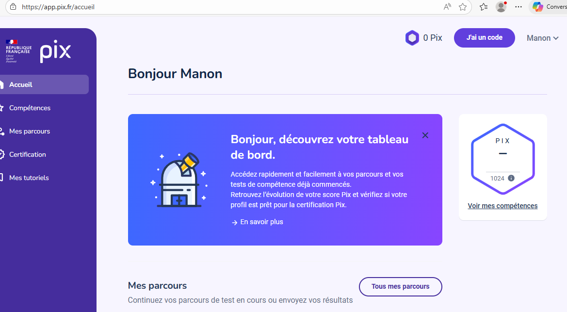 N’oublie pas de faire ton nouveau parcours Pix. Pour te connecter à ton parcours, clique sur (...)